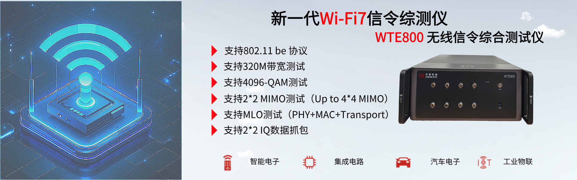 WTE800無線信令綜合測試儀(以下簡稱“WTE800”)是由深圳市中承科技有限公司自主研發(fā)和生產(chǎn),可用于Wi-Fi設(shè)備在研發(fā)、生產(chǎn)、認(rèn)證等環(huán)節(jié)測試的多功能綜合測試儀,通過配置客戶端或AP端參數(shù),真實建立Wi-Fi網(wǎng)絡(luò)呼叫連接,自動實現(xiàn)被測件的各項射頻與協(xié)議性能指標(biāo)精準(zhǔn)測試。